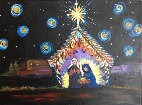 Marsha will be guiding the group to paint a colorful nativity.
